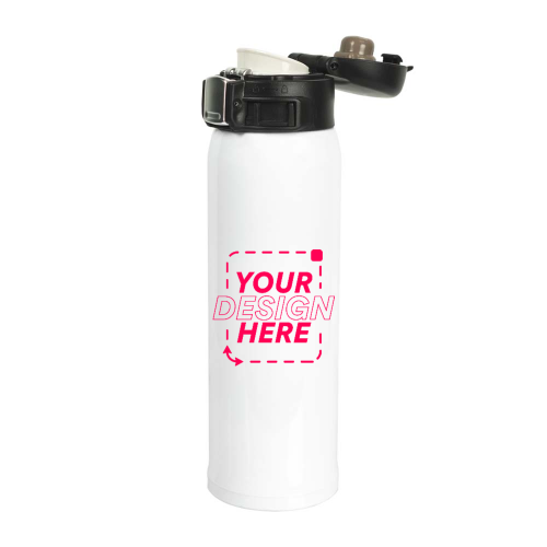 12oz Stainless Steel White Coated Water bottle with Sport lid