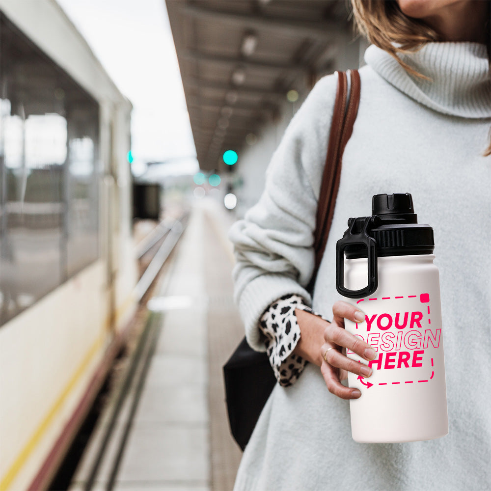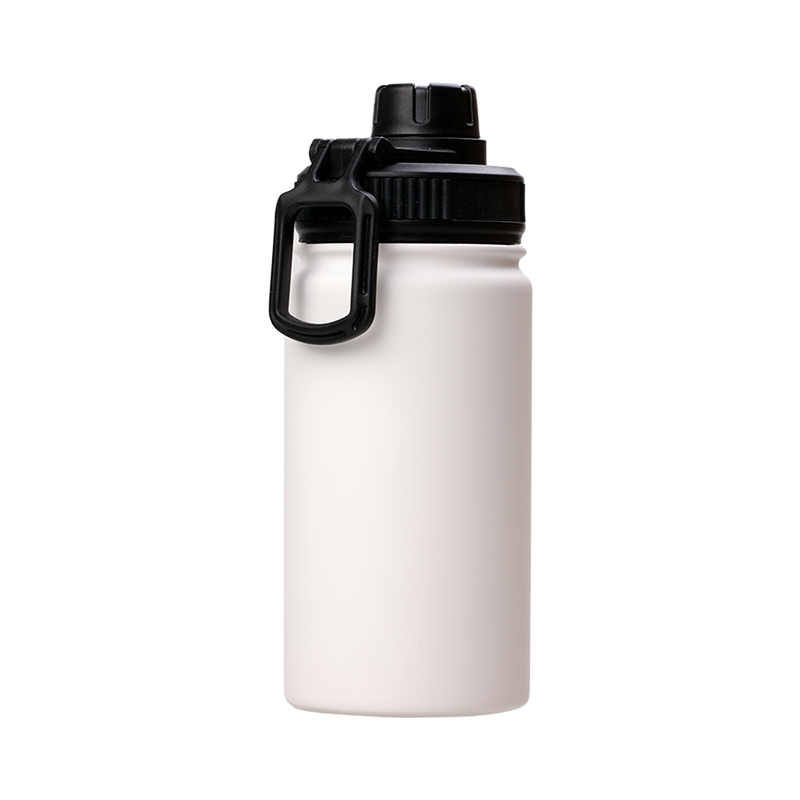 12oz Stainless Steel White Coated Water bottle with Sport lid